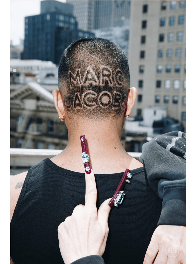Is this refreshing water-off-a-duck’s-back perspective nirvana? Perhaps it’s nailvana. “I’m just a lot happier since I have the nails,” he says. Even this blissful era isn’t without some sort of critique — and yet, Jacobs sees the joy within the critique. “Among 500 comments, there’s five negative ones. One of them is like, ‘I miss kilt Marc. I miss grunge Marc. I miss muscle Marc. I miss this Marc.’ I just think it’s so funny because for anyone who really does miss that thing, they should know that this is just my trajectory,” he says. “It’s like I’m always becoming, and I’m always playing with, and I’m always trying, and when I stop doing that, I mean, that’s when I’ve just had it.” Leave it to Jacobs, who has his finger — albeit with a lacquered tip — always on the pulse.