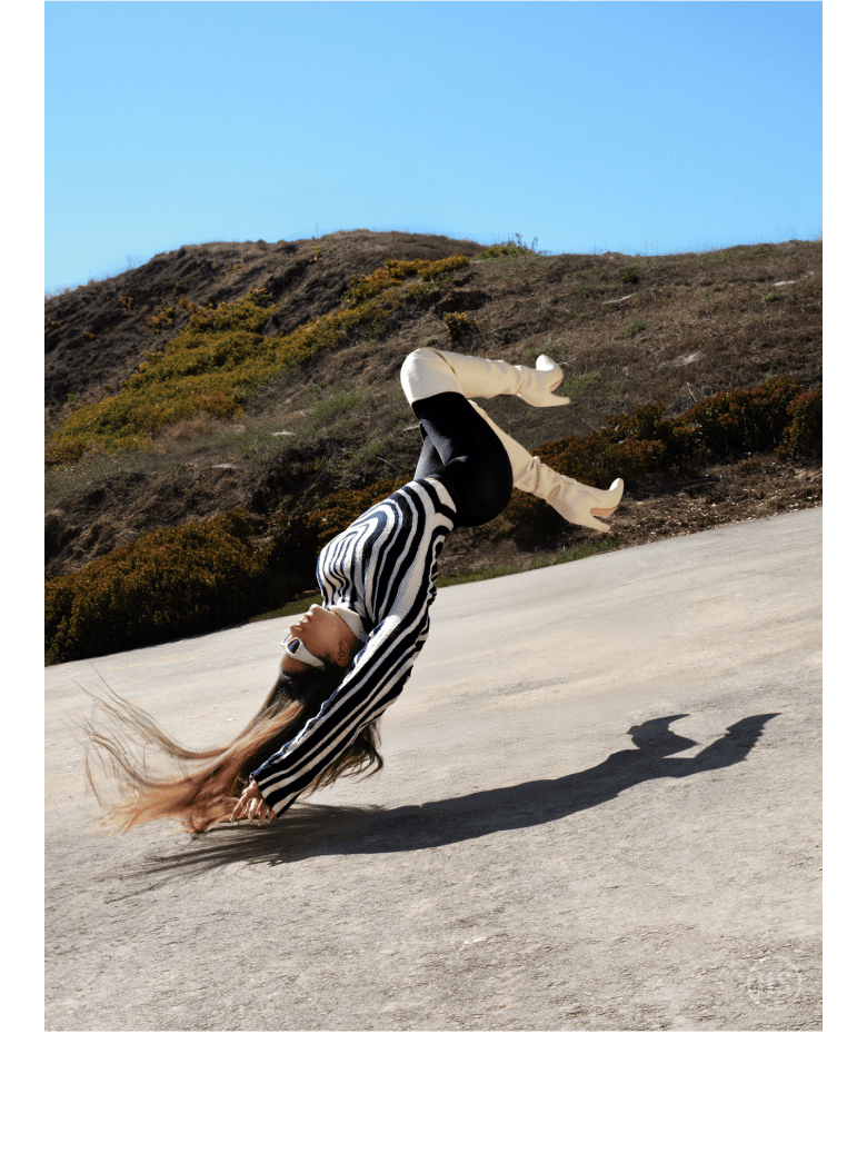 This is the Rose who shows up to set for Highsnobiety in Los Angeles. No famous friends around her; no memes or jokes. She doesn’t check her phone or Irish exit. Rose can’t help but be CUUUUuuuuuute. She’s a visionary, too, of course, with an excellent fucking voice and a real sense of style.